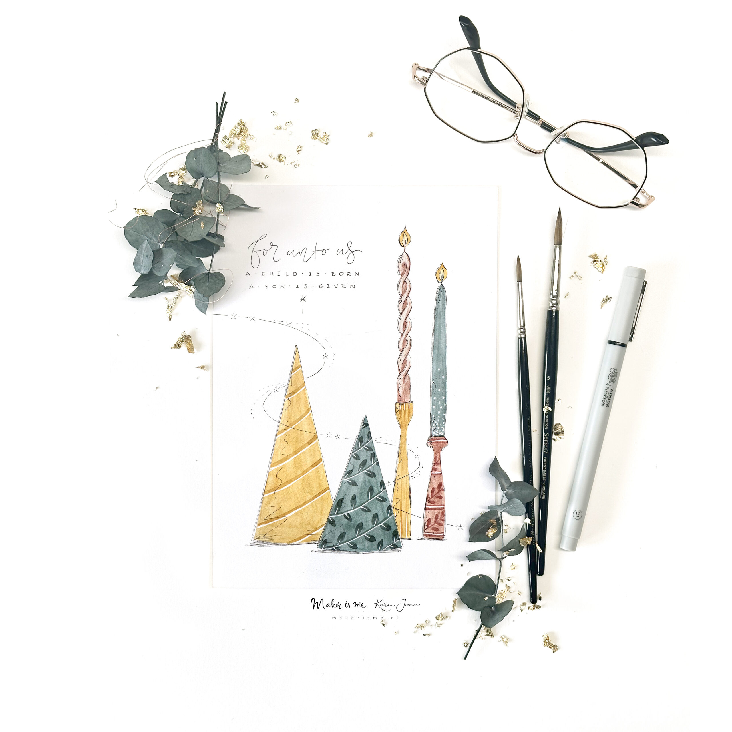 We zijn alweer toegekomen aan het vierde project in onze workshop serie Christmas at Home. In dit project maken we onder andere de mooie gedraaide kaars en ontdekken we dat de abstracte kerstbomen heel veel mogelijkheden laten voor decoratieve elementen. We voegen ook een stukje tekst toe in Monoline Lettering om ons werk af te maken.
