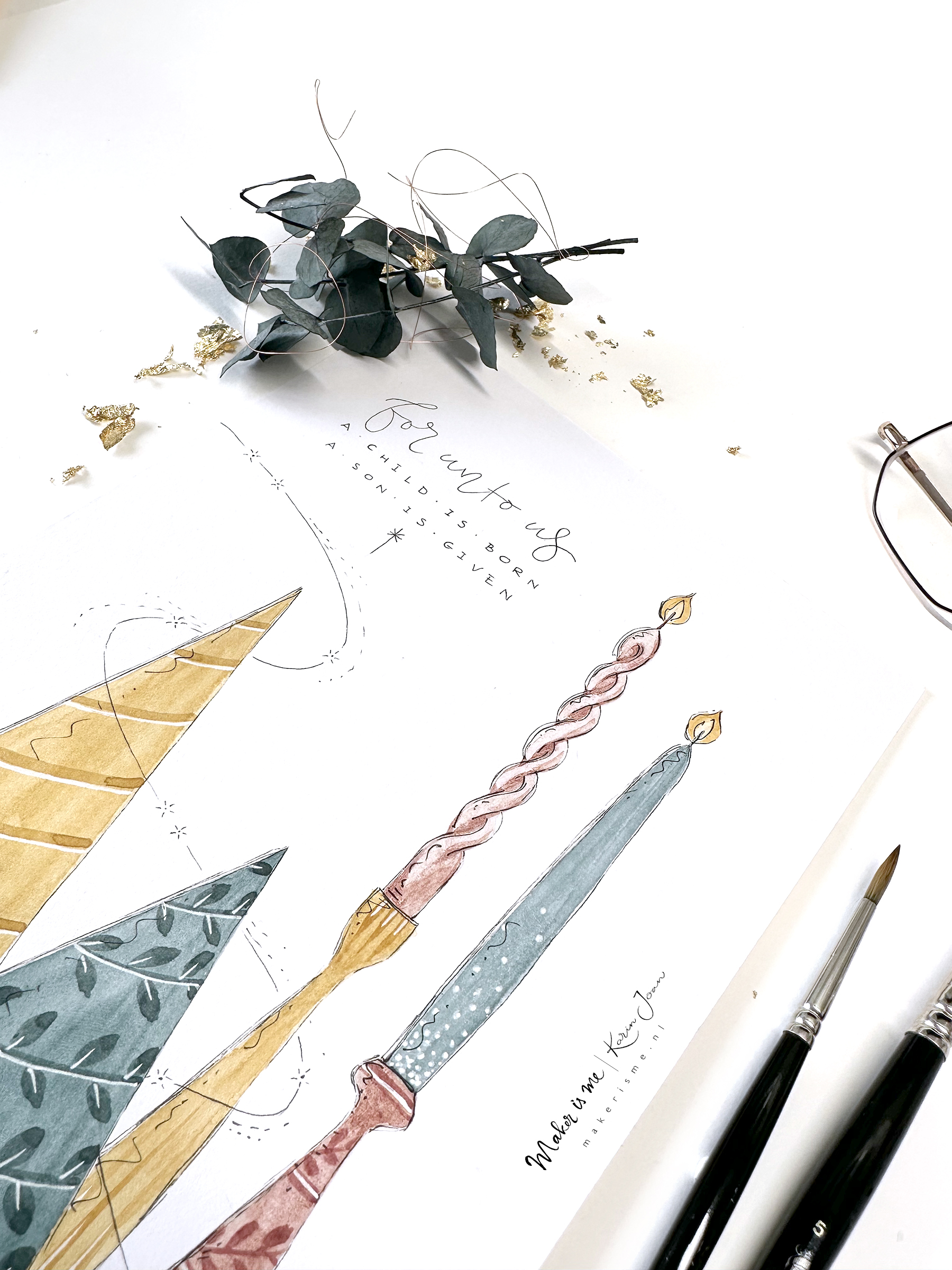 In de live sessie speel ik ook met de toevoeging van goud metallic watercolor of inkt voor een beetje extra glans in deze donkere dagen.